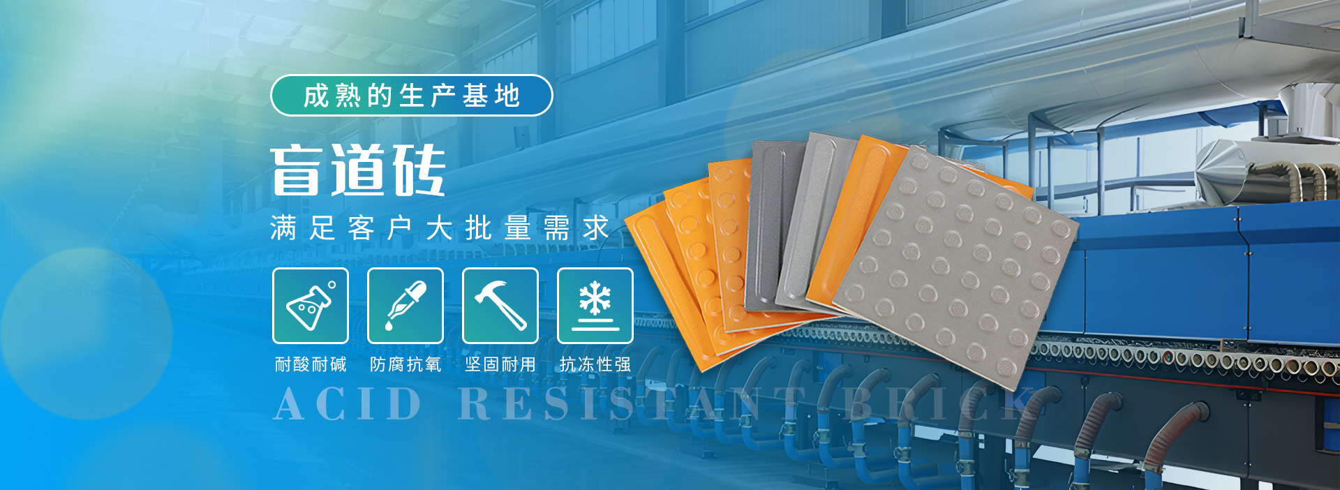 公司采用新技術、新設備、80米輥道窯兩條,壓力機3臺年產耐酸磚5萬砘,居國內耐酸磚廠家較高水平